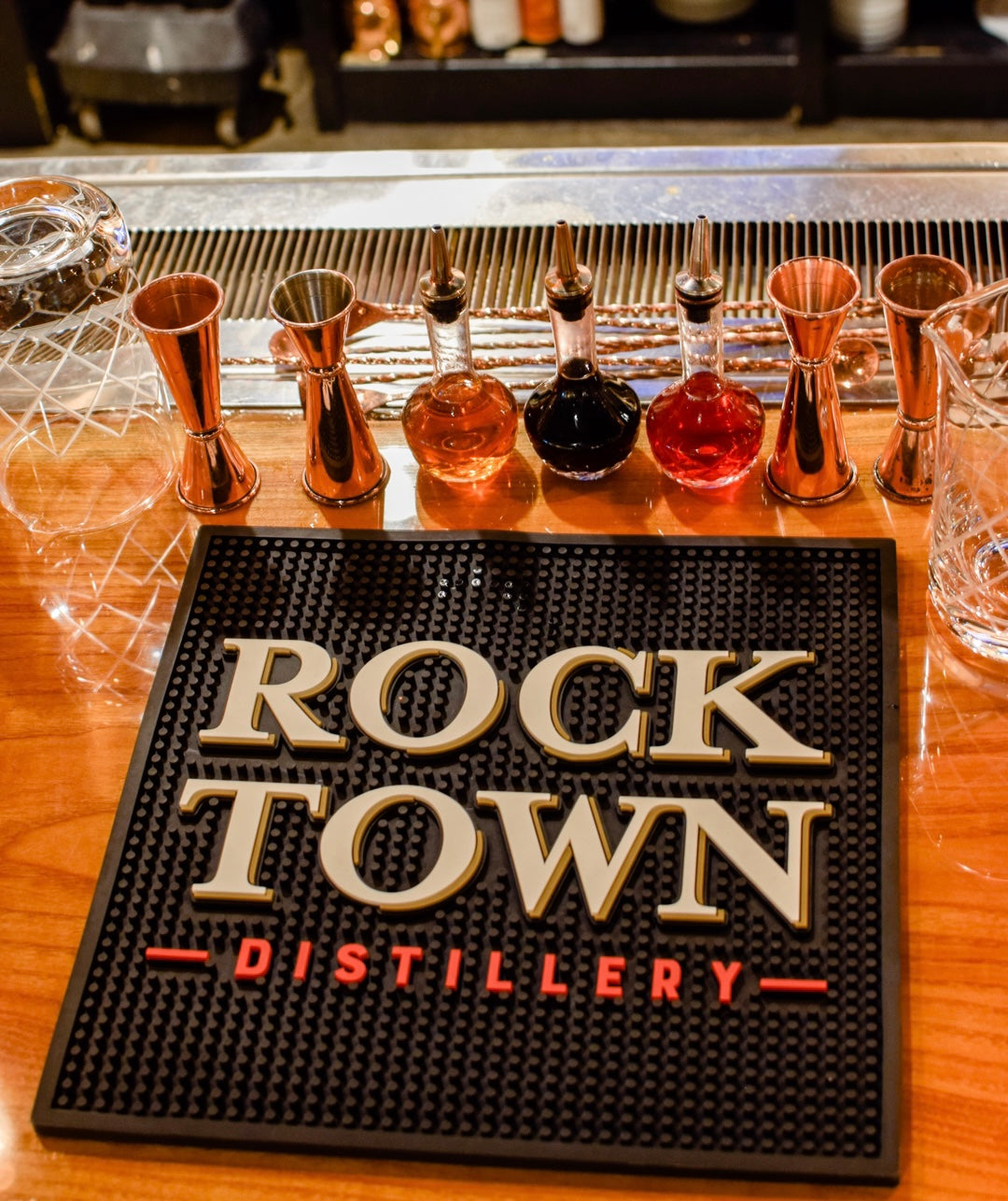 This durable rubber mat can be used for drying bar glasses or just to add a bit of Rock Town to your home bar. This Drink Mat comes complete with a textured surface for non-slip traction and features the Rock Town Distillery Logo. Dimensions (Overall): 1.0 inches (H) x 14 inches (W) x 14.0 inches (L) Hand Wash Only.